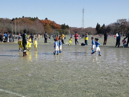 2011-12-11 第16回四街道チャリティー・ミニサッカー大会(幼稚園) 2017年度卒団生 12月11日(土) 四街道総合公園グランドで、第16回四街道チャリティ・ミニサッカー大会に参加しました。幼稚園・保育園としては、今年最後の大会となりました。 第一試合 対イーグルス 1-5 負け (得点 マサト) 第二試合 対FC根郷 0-0 同点 結果、予選敗退。 ソウタ君、ヒロキ君にとっては、初めての試合(というよりも、練習含めても2回目ぐらいですが)ということで、どうでしたか?二人とも、試合楽しかった!って話していましたね。これからも、たくさん練習たくさん遊んでサッカー楽しみましょう!