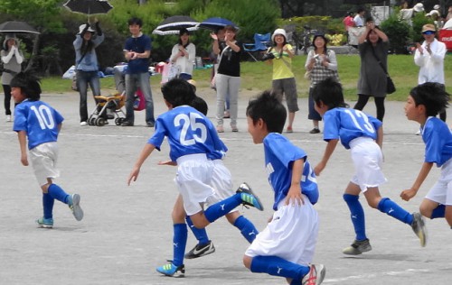 そんな中、予選1試合目に習志野の強豪チーム相手に、動きの硬さから開始早々に失点。中盤一進一退の攻防のあと、最後の最後に同点に追いつく脅威の粘り (1-1 VS 習志野MSS)