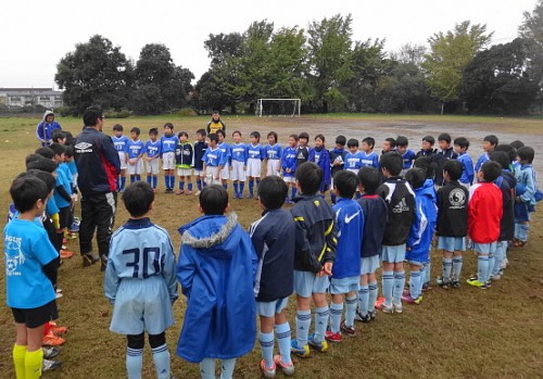 前日からの雨がまだ残って小雨の降る中、他のクラブが試合開始を躊躇するあいだに、村上っ子は「当然やる!」気持ちを前面に押し出して、まずはグランドをドリブルで大きく一周し、その後はみんながビックリするくらいの大きな声で準備運動